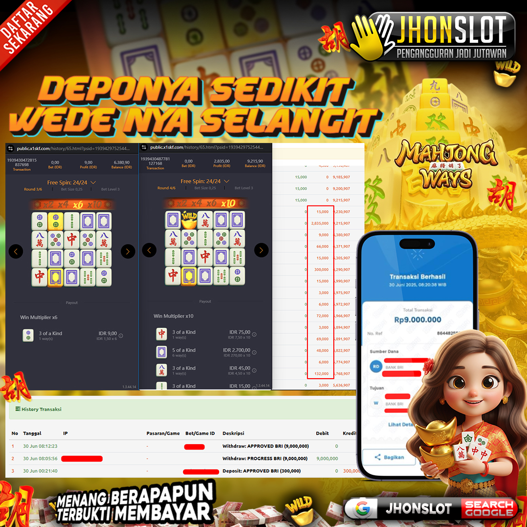 Usai mendapatkan kemenangan, proses withdraw langsung dilakukan oleh SUK****123 tanpa hambatan. JHONSLOT yang dikenal dengan sistem penarikan otomatis dan cepat, memproses pencairan dana hanya dalam hitungan menit. Tidak ada potongan, tidak ada drama — kemenangan langsung masuk ke rekening pemain dengan aman dan cepat.