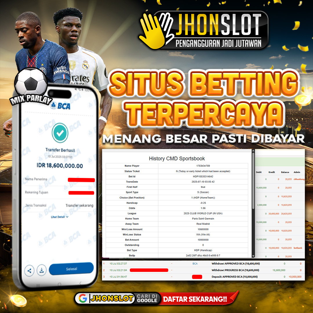 JHONSLOT semakin dikenal sebagai situs slot gacor dan terpercaya, yang memberikan peluang menang tinggi, transaksi cepat, dan layanan pelanggan responsif 24 jam. Kemenangan besar seperti ini bukanlah yang pertama, dan pasti bukan yang terakhir, karena sistem fair play di JHONSLOT menjamin hasil permainan sepenuhnya murni dari keberuntungan dan strategi pemain.