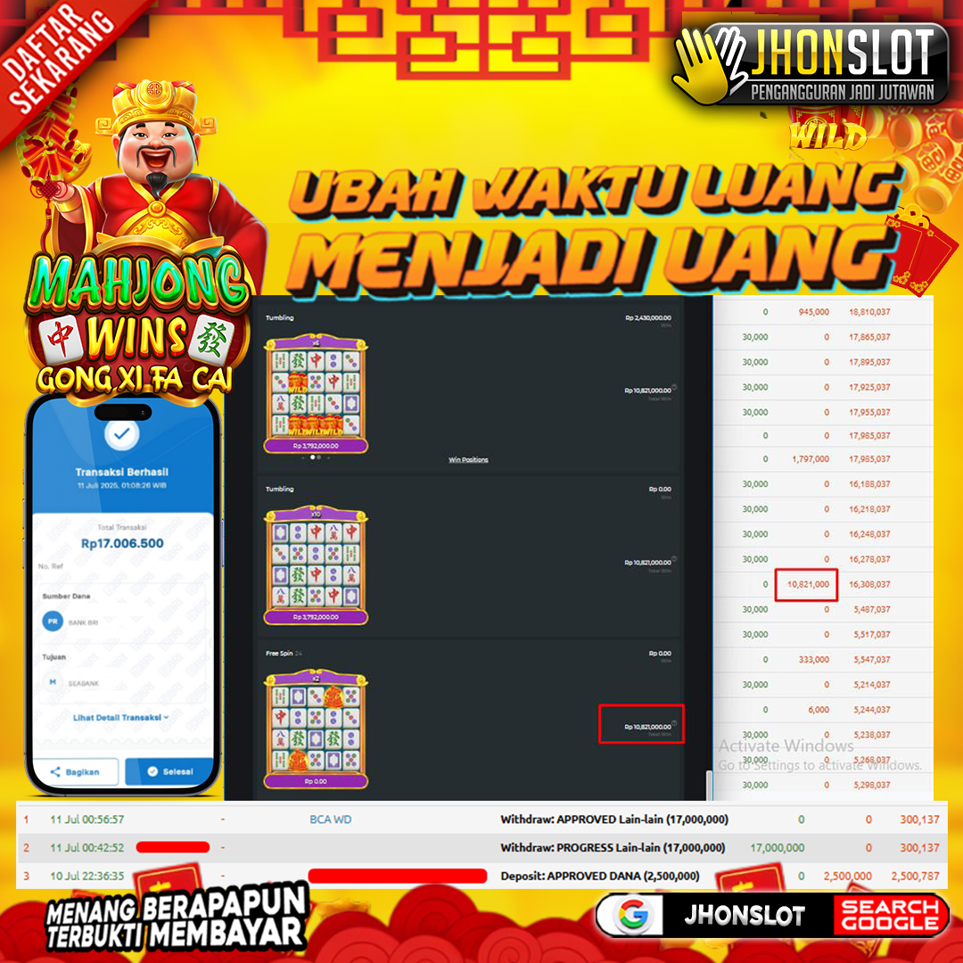 𝐌𝐨𝐝𝐚𝐥 𝐜𝐮𝐦𝐚 𝐑𝐩 𝟐𝟓.𝟎𝟎𝟎, 𝐈𝐃 𝐬𝐡𝐨****** 𝐬𝐮𝐤𝐬𝐞𝐬 𝐦𝐞𝐧𝐚𝐧𝐠 𝐝𝐚𝐧 𝐰𝐢𝐭𝐡𝐝𝐫𝐚𝐰 𝐑𝐩 𝟕.𝟓𝟎𝟎.𝟎𝟎𝟎 𝐝𝐚𝐫𝐢 𝐠𝐚𝐦𝐞 𝐌𝐚𝐡𝐣𝐨𝐧𝐠 𝐖𝐚𝐲𝐬 𝐝𝐢 𝐬𝐢𝐭𝐮𝐬 𝐬𝐥𝐨𝐭 𝐠𝐚𝐜𝐨𝐫 𝐉𝐇𝐎𝐍𝐒𝐋𝐎𝐓. 𝐁𝐮𝐤𝐭𝐢 𝐛𝐚𝐡𝐰𝐚 𝐡𝐨𝐤𝐢 𝐛𝐢𝐬𝐚 𝐝𝐚𝐭𝐚𝐧𝐠 𝐝𝐚𝐫𝐢 𝐫𝐞𝐜𝐞𝐡𝐚𝐧!